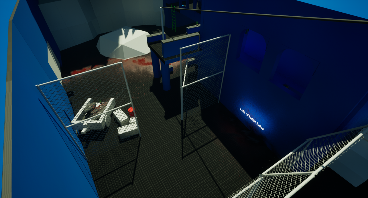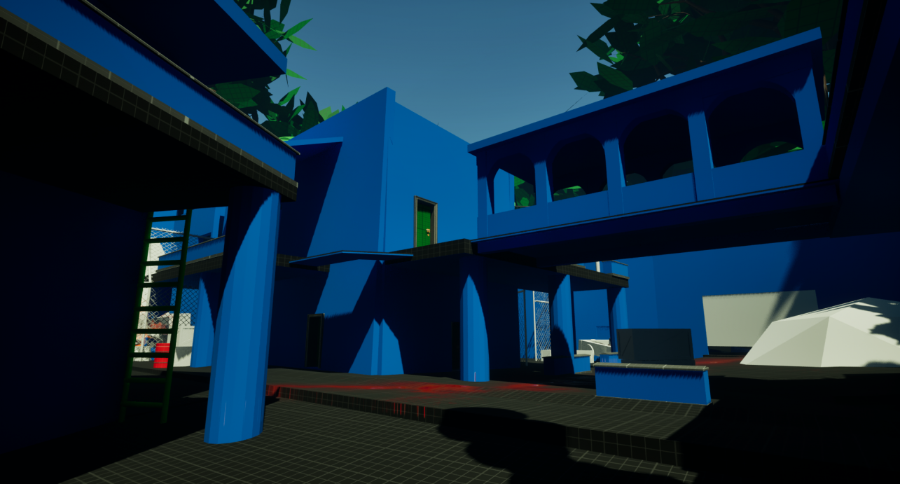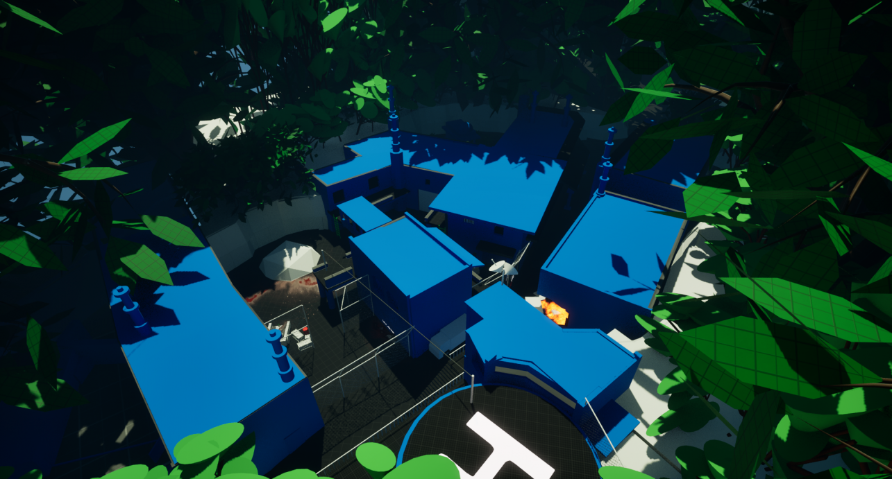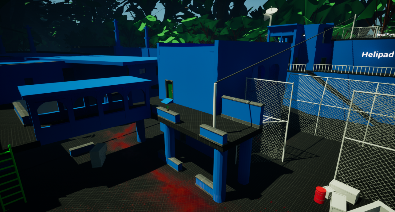 Most recently I have been working on a blockout level with mentorship from a level designer working for Ubisoft. This Level is inspired by the Resident Evil series with a linear and metroidvania style of progression. The level took around one month to complete from scratch. This included creating blueprints, storyboard art, sound effects and a few changes to the layouts for optimal gameplay. The level is split into two parts set in the Indian jungle. The introduction takes place within the jungle wilderness as Leon makes his way to his objective. Along the way he is derailed, ending up at a secret facility ran by Umbrella experimenting on villagers. The level introduces the following mechanics to the player, movement, camera, combat, inventory, interactable objects and puzzle solving.