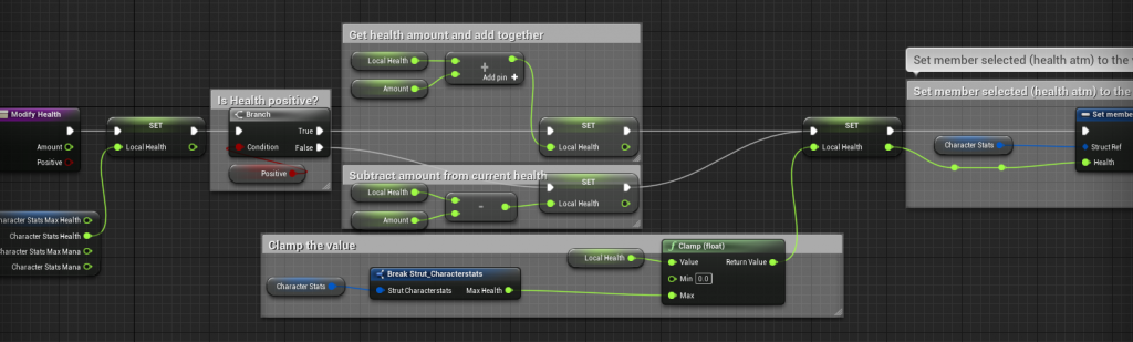 - I looked into and tested player health systems using STRUCT nodes and interface systems: