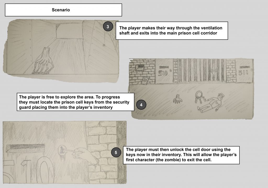 Create NPCs (other zombies) walking around their cells and also include the ability to interact with an NPC to progress through the level.