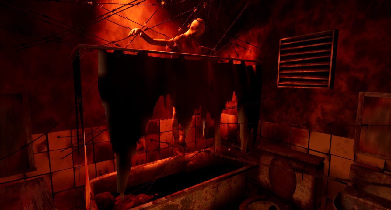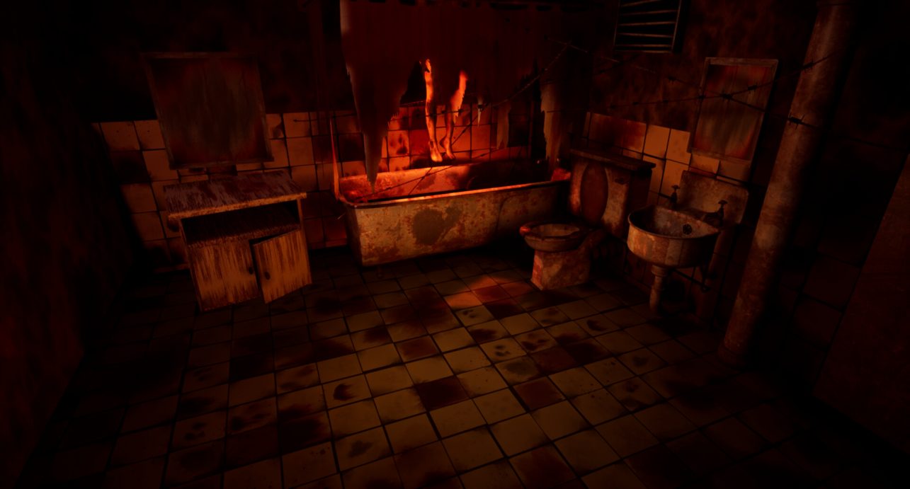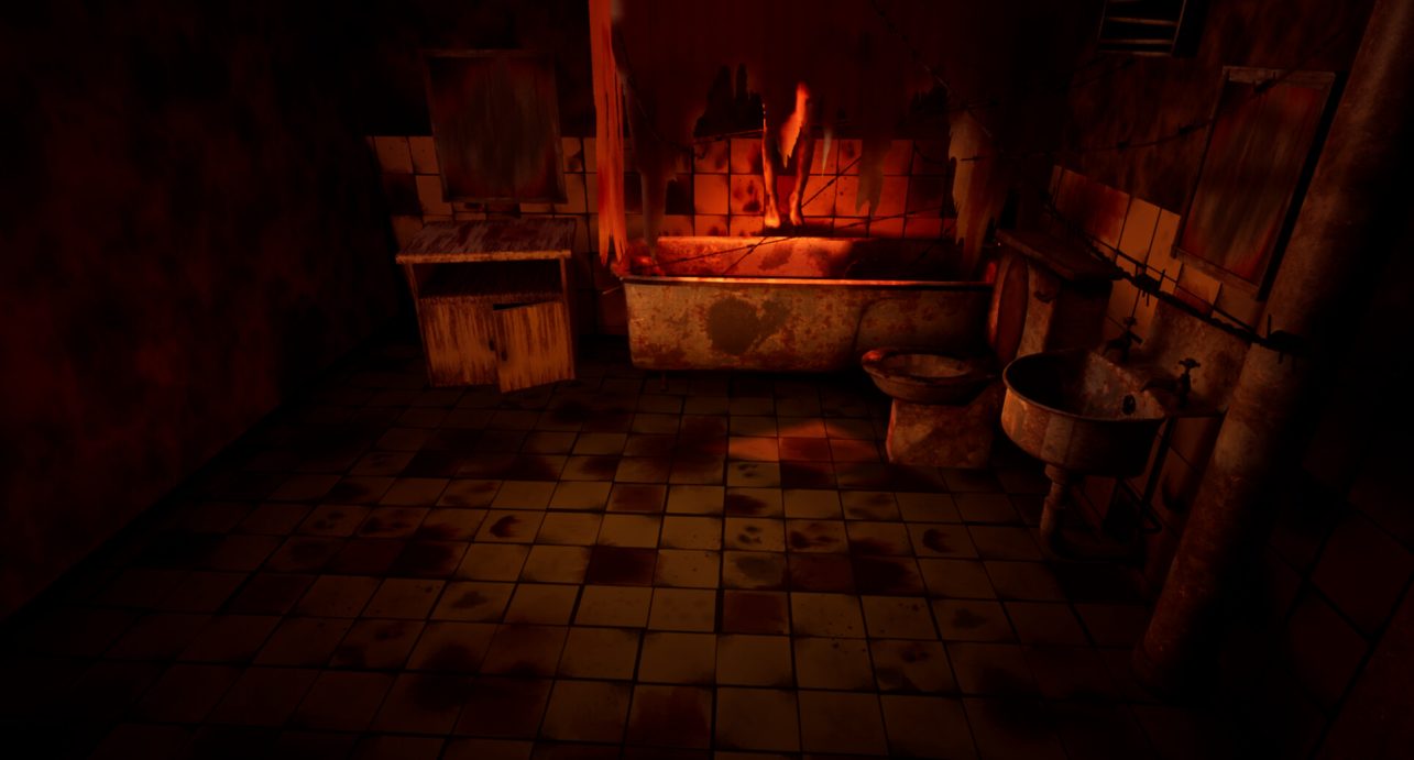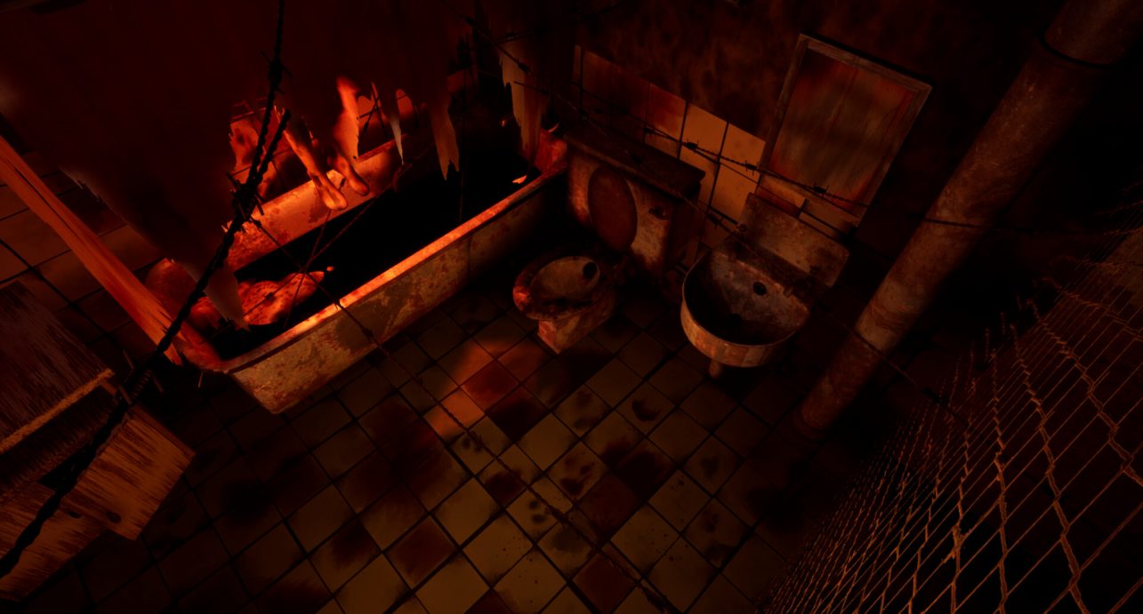 I added a mirror which would be covered by a “dirty” texture and some large piping in the corner. I remember wanting to make it as realistic as possible by making sure the taps for the bathtub and sink had pipes for where the water would come from.