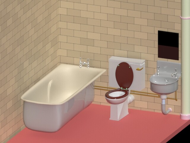 I started off looking at real life bathrooms online and copying the scale of the utilities. This was so my models would be a realistic size and match one another. Next I began by starting with the bathtub then onto the taps. I painstakingly created the taps in about 30 different pieces so I could delete a part if it went wrong (a big learning curve). I would then attach them altogether once I was happy with the pieces.